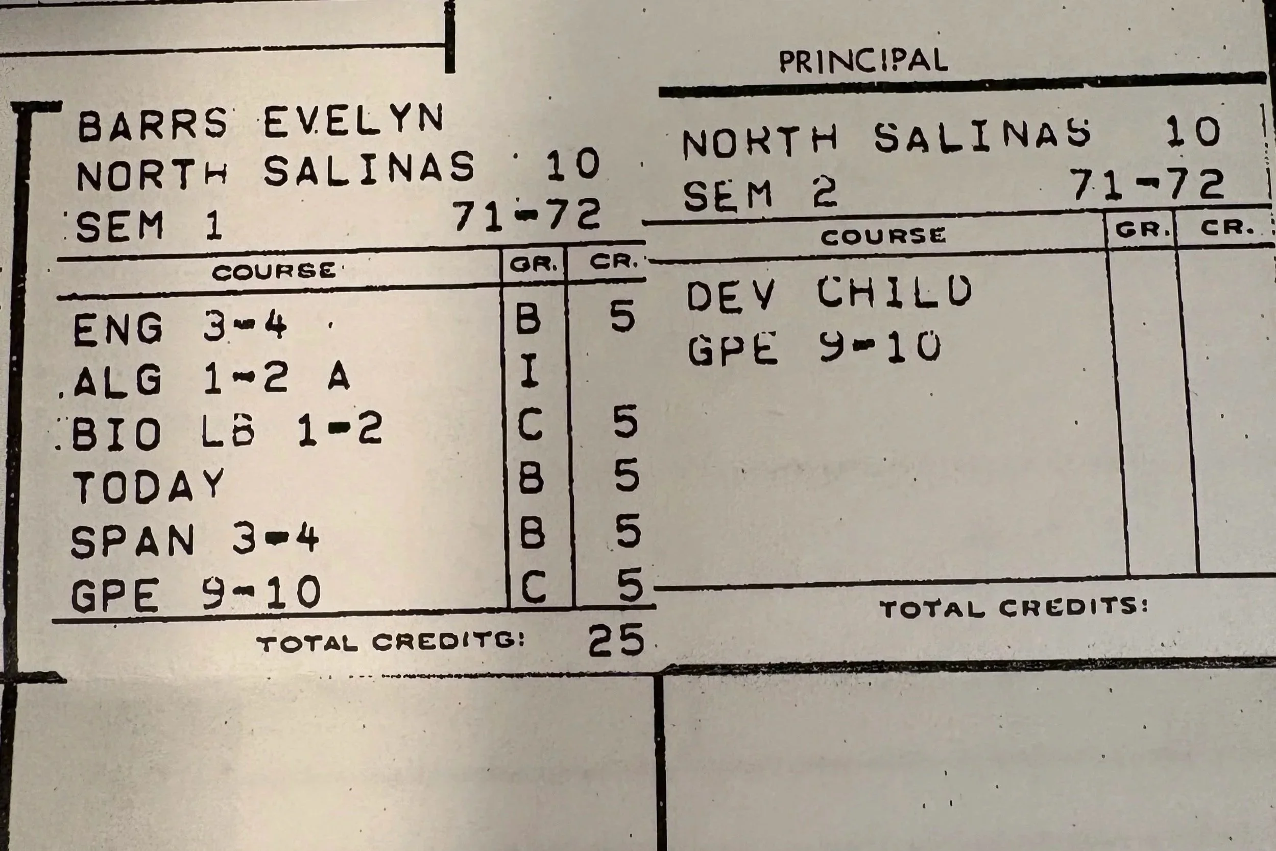 Those transcripts reflect a life already veering off script. Those records end when I dropped out and ran away from home at age fifteen.